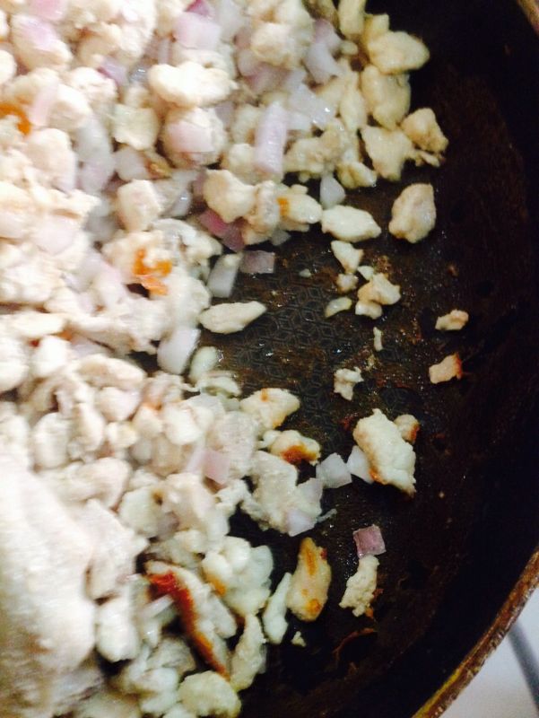 احمسي المفروم بالبصل وضعي كاري وملح وشوية فلفل اسود