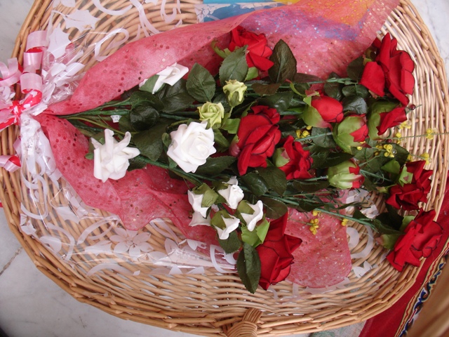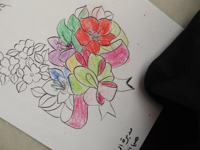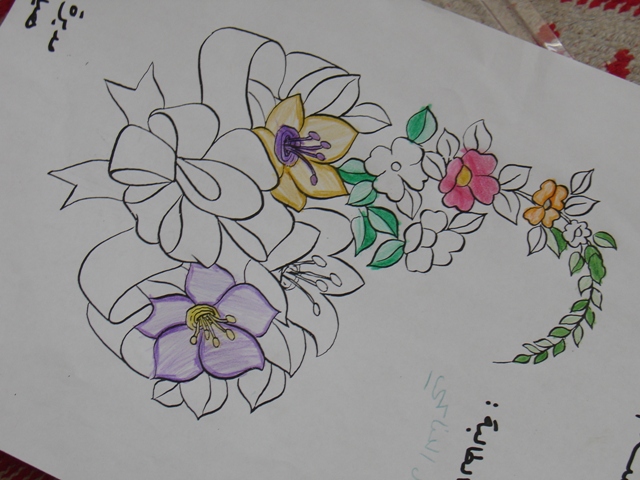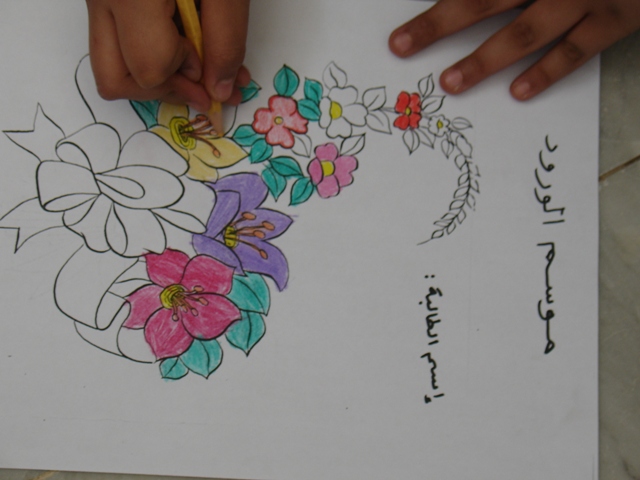 تقوم الطالبات بتنسيق باقات وفازات من الورود