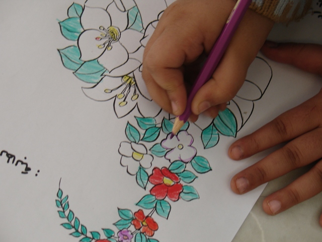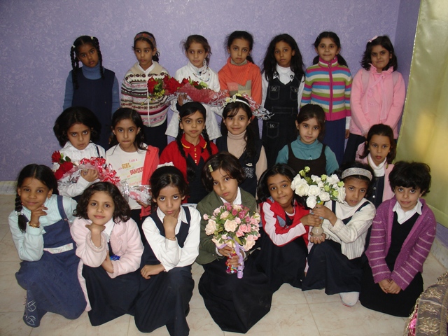 ومربية الفصل تقوم بشرح كيفية العناية بالورود للطالبات