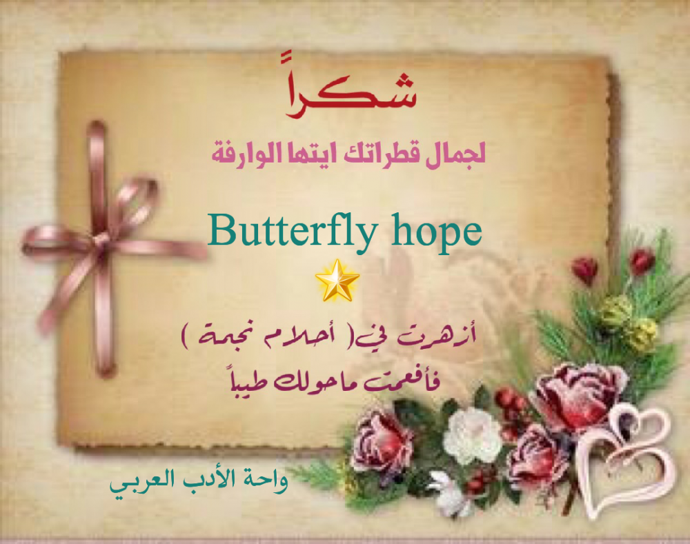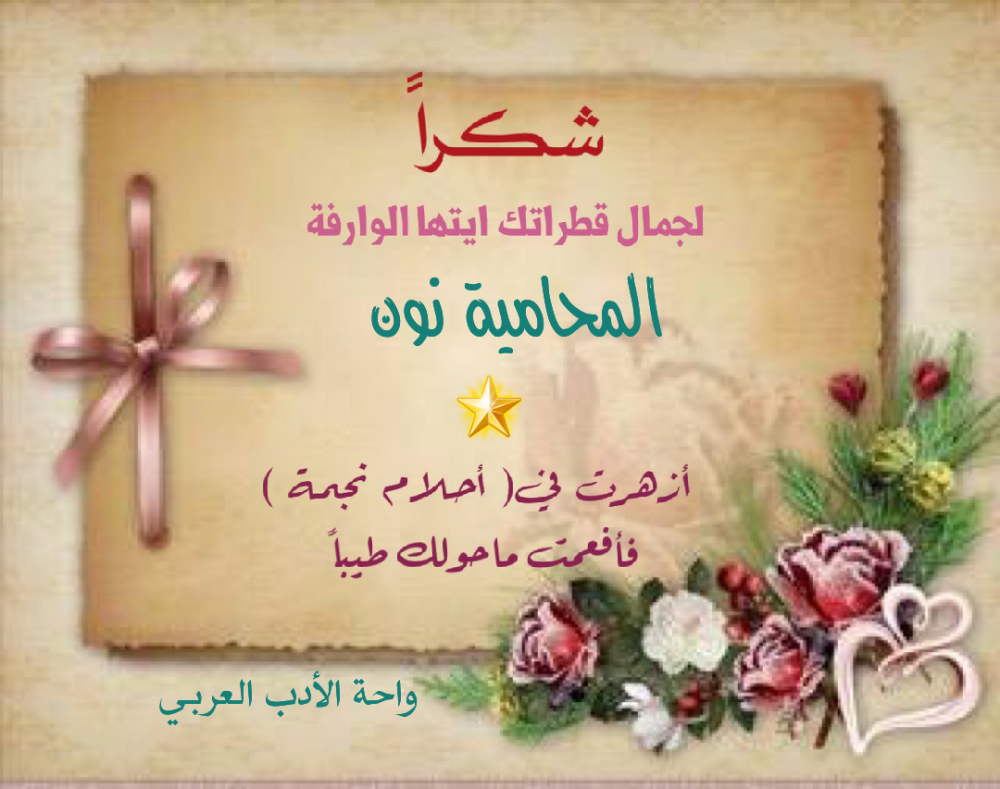 شكرا لك على لفتتك الرقيقة والمعهودة من قلب جميل كقلبك