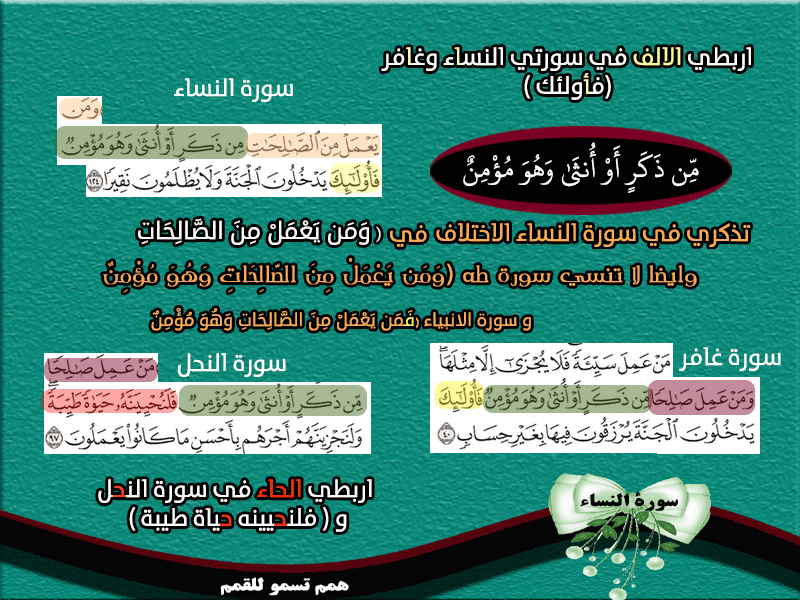 أخطاء شائعه عند تلاوة النساء على رواية حفص بن عاصم بدايات الأرباع ليسهل تذكرها