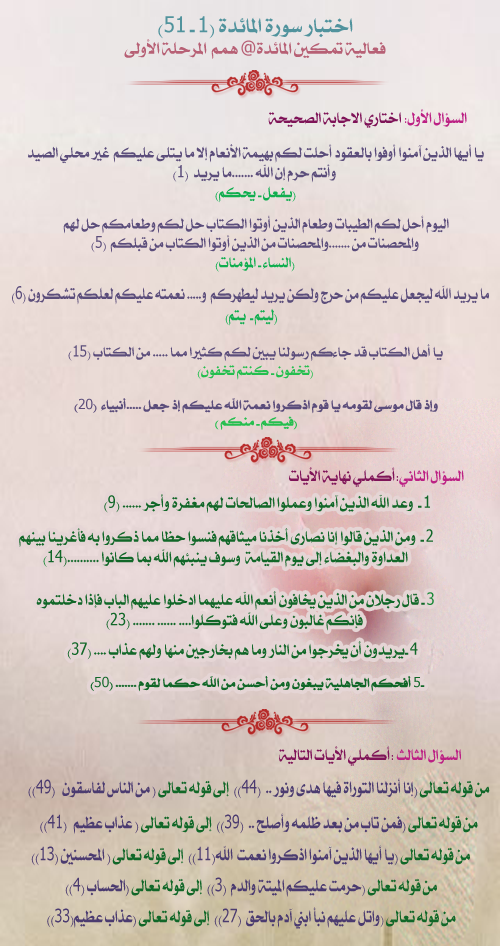 ✿✿ تدبر سورة المائدة المرحلة الأولى ✿✿
