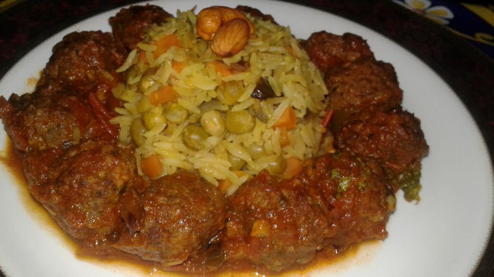 وتقلبيهم مع بعض ثم حطي نص علبه بازلاء وجزره مقطعه قطع صغيره وحركيهم مع البصل ثم الرز وحركي واغمريه ماء وسوي ملح ووطي النار تحته