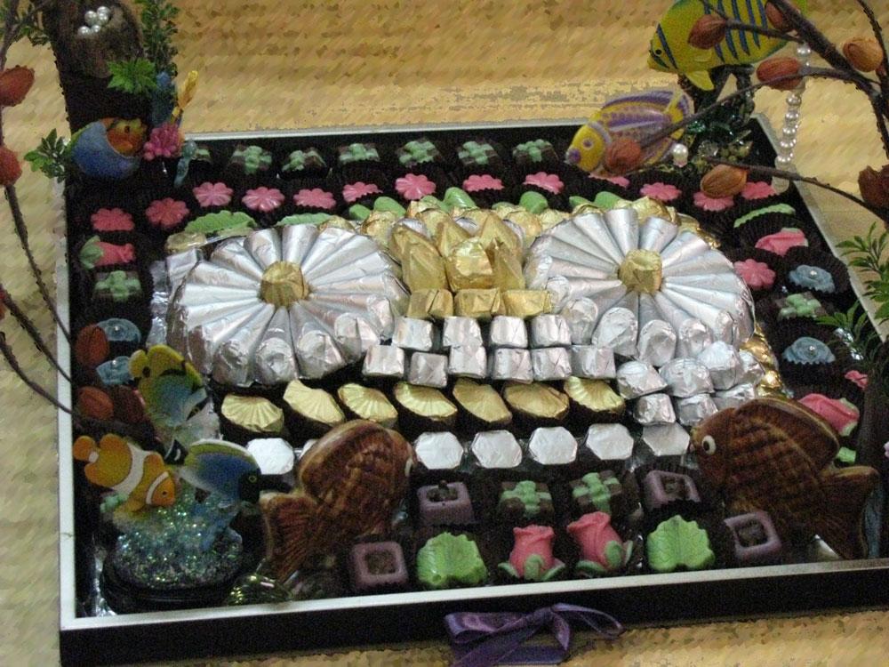نفس الصحن بس غيرت الشوكولاتة اللي في الوسط حطيت شوكولاتة مغلفة من حفلتي
