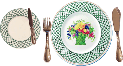 * وتوضع سكينة الزبدة على يمين الطبق وتكون حافتها الحادة متجهة إلى وسط الطبق.