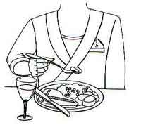 * توضع السكين إلى يمين الطبق وتكون حافتها الحادة باتجاه الطبق