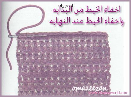 وعند الانتهاء نترك خيط طويل .... ونعمل عقدة النهايه ..... وايضا نخفي الخيط بين الغرز مثل الصوره