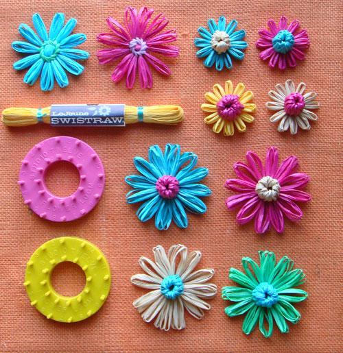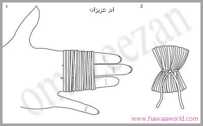 نلف الخيط على الاصابع .... او ممكن كرتونه ..... ثم نربط الخيوط من الوسط .... ثم نقص الاطراف ... وطبعا ممكن نخلي الخيوط بلون واحد او بكذا لون