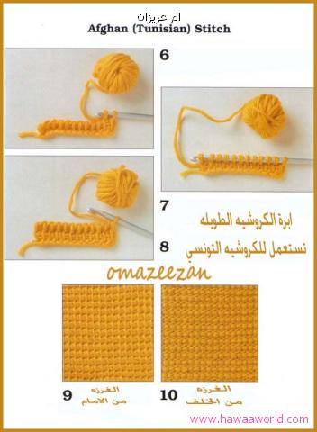 وايضا الكروشيه التونسي يحاك بطريقه خاصه مثل ما شفنا بالصور السابقه وهذى بعض النماذج عنه