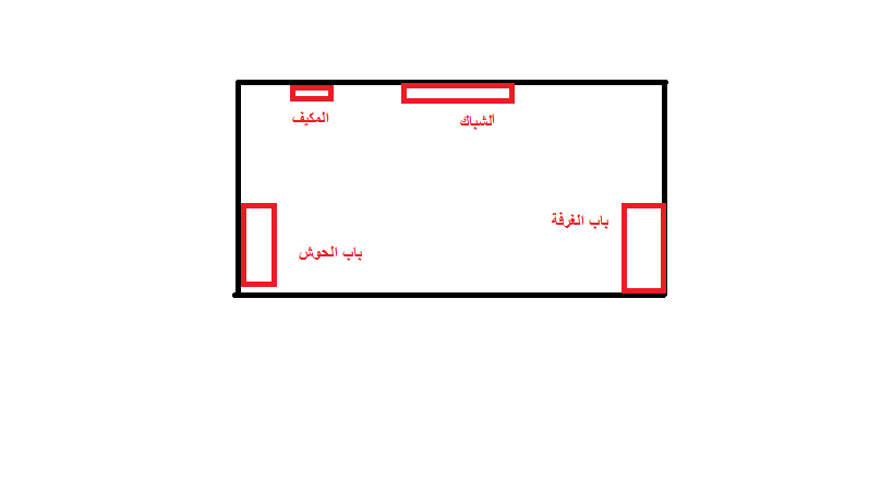 اولا : صورة الغرفة بشكل عام هذا تتكون من بابين باب الغرفه الاساسي والباب الاخر يفتح على الحوش صغير