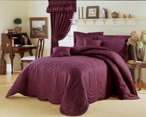 بعدين نجي للاكسسوارت خل مفرش السرير باذنجاني مثل هالصورة و وزعي خداديات تفاحي وبنفسجي فاتح مثل بقية الجدران