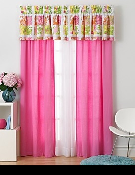 شوفي موديل الستارة حلو بس غيري ترتيب الالوان فوق خليه تفاحي فيه نقوش بالوردي والستارة وردية والشيفون مشجر مثل اللي فوق يطلع حلوووو