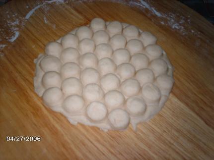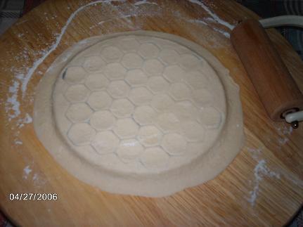 هلا حبيبتي هذي طريقة إستخدام القالب بالصور ولاتنسوا تدعولي يناولني إللي في بالي..طيب... لاتنسواااااااااااا ترى أحسن شي الدعوة في ظهر الغيب... ياويلها إللي تطلع وماتدعيلي..:42: .... لالالالا حلووووين إنتو حتدعولي أنا عارفة لأن قلوبكم بيضاء ومايحتاج أحد يوصيكم..صح..؟؟:42: أول شئ نفرد عجينة دائرية أكبر من حجم الآله بشوي نرفع العجينة فوق الآله و نمشي عليها بالعجلة ( النشابة ) إلى حد ما توضح المعينات الموجودة في الآله ( بدون ما تتقطع ) بس تحددين الشكل نضع داخل كل معين صغير قطعة من الجبن ( الخطوه هذه نسيت ما أصورها ) بعدين نفرد عجينة ثانية و نحطها فوق طبقة الجبن و نبدأ نمشي عليها بالعجلة ( النشابة إلى حد ما توضح المعينات الصغيرة في الخلية و نكرر العمليه على الأطراف حتى نتخلص من العجين الزائد على الطرفهلا حبيبتي هذي طريقة إستخدام القالب بالصور ولاتنسوا تدعولي يناولني إللي في...