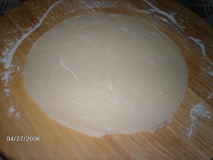 أول شئ نفرد عجينة دائرية أكبر من حجم الآله بشوي