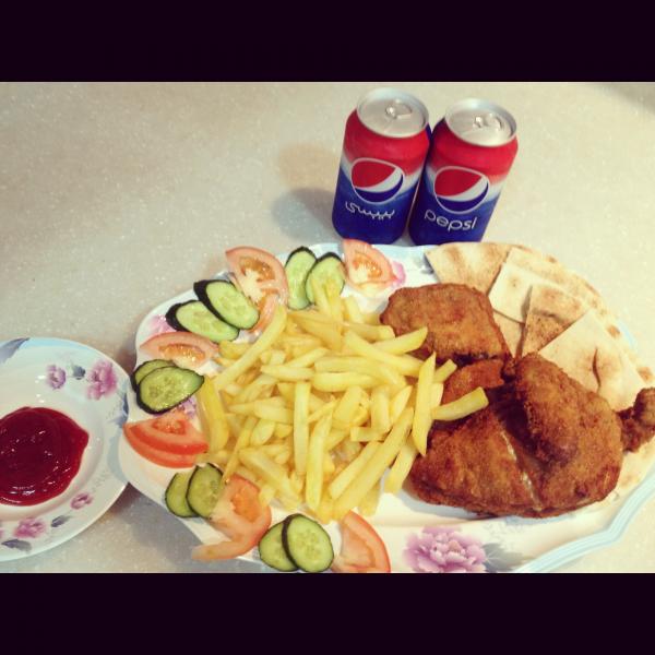 اخت خفوقه شكرا تري اول مره اسويها بطريقة منال العالم صفيت الدجاج والخضار المقليه بصينيه وحطيت الرز والمرق وقصدرتها وعلي الفرن