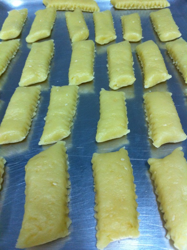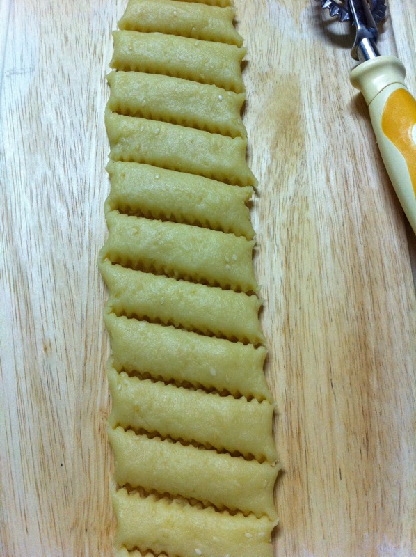 ناخد قطعه م العجين ونلفها علي شكل اسطوانه ثم نفردها