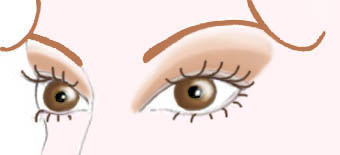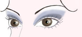 - لتنفيذ متقن لماكياج العيون أبدئي دائما باللون الفاتح(الأبيض اللامع) مباشرة تحت الحاجب حتى حدود الجفن المتحرك أي على كامل الجفن الثابت (يجب أن تكون الفرش مبللة بالماء أثناء العمل ).