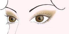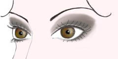 1- بعد وضع كريم الأساس المناسب و خافي العيوب تحت العين( الكونسيلر) وتثبيت الكل بالبودرة الحرة نبدأ برسم منطقة العيون.