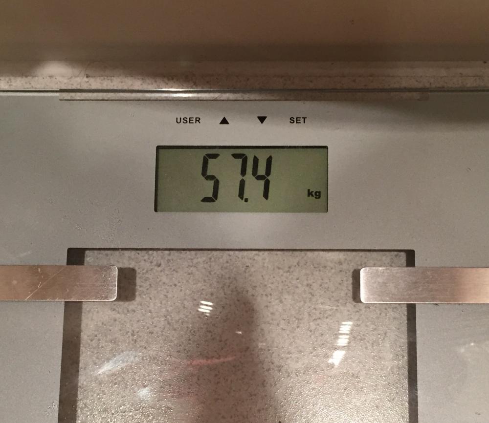 وزني السابق 59.8 ووزني الحالي 57.4
