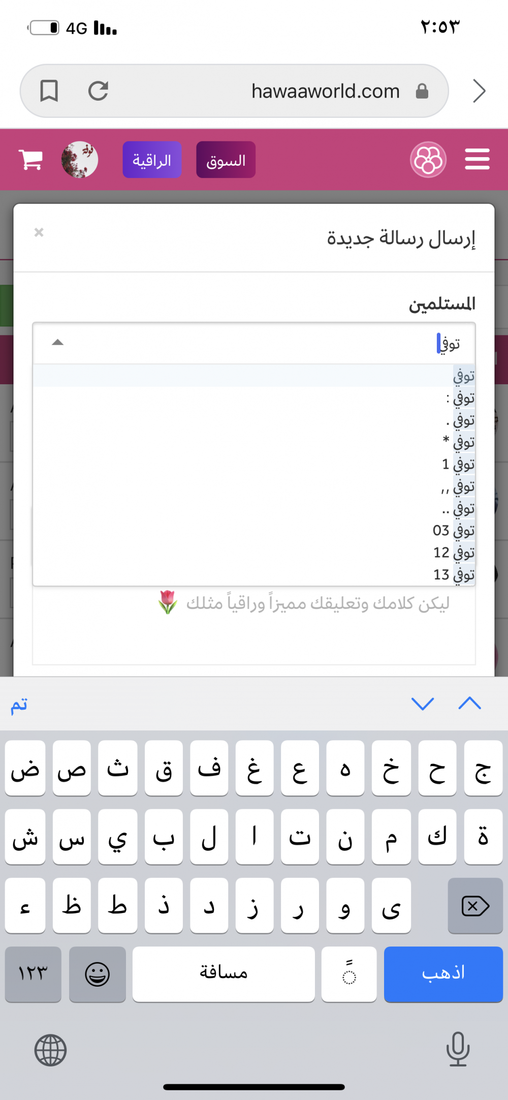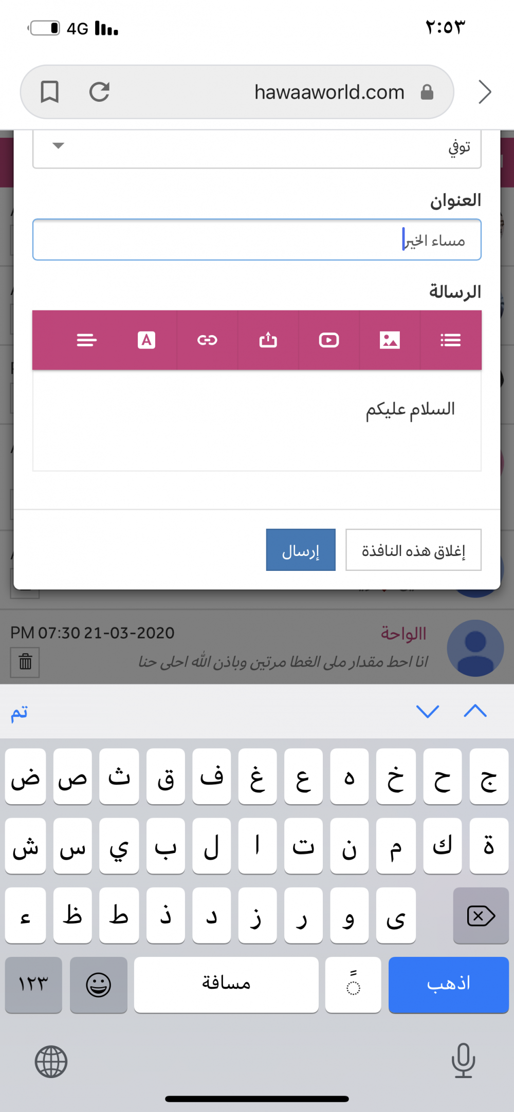 واضح كذا وبعدين ارسال