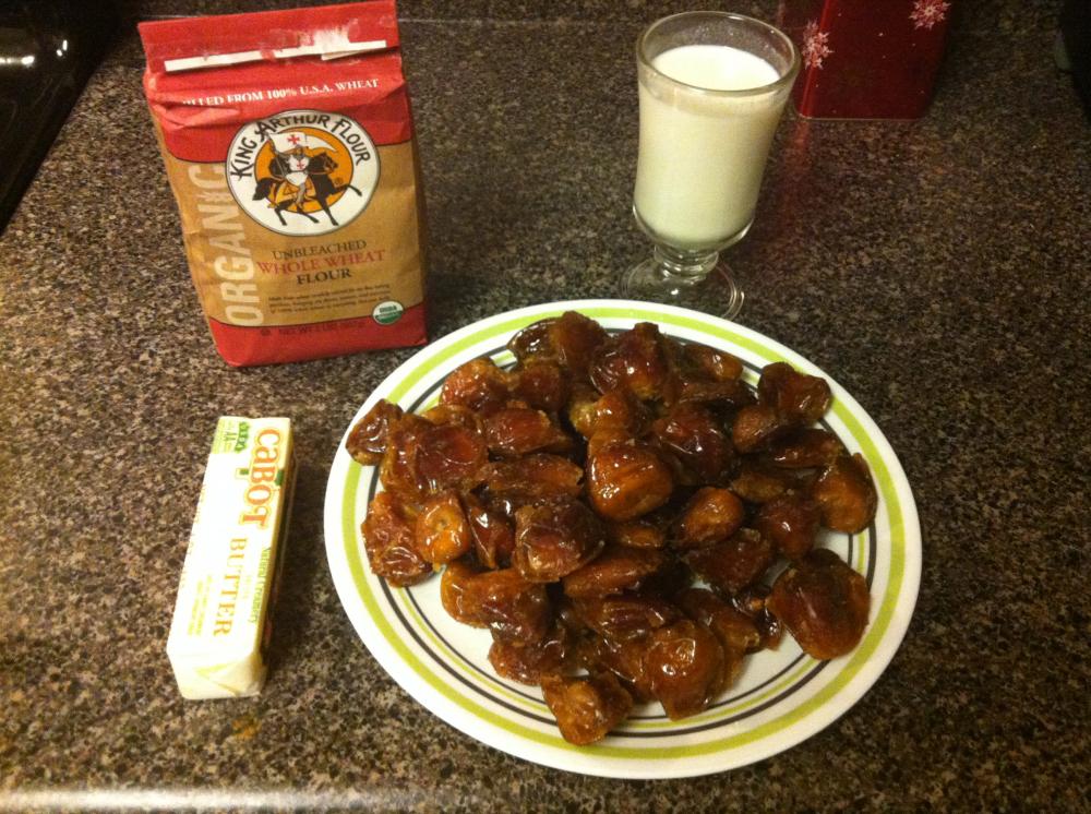 دقيق اسمر - اصبع زبده - فنجان لبن او اقل - تمر حسب النوعيه المتوفره ( انا سويته بسكري مكنوز )