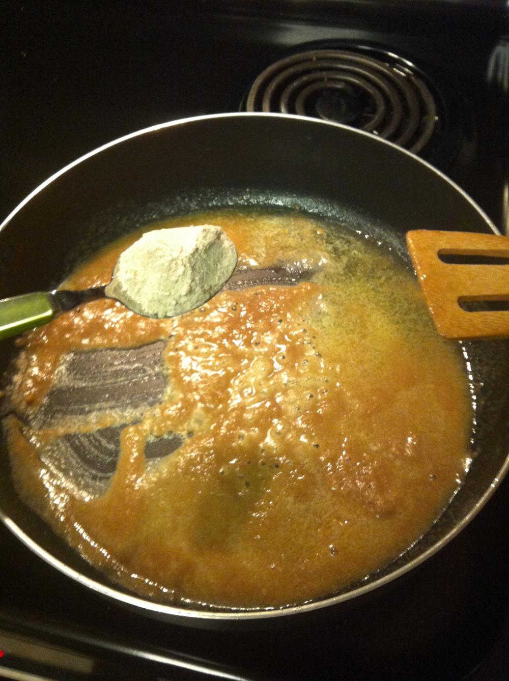 بعد ماتذوب تماما اضيفي الدقيق حسب كميه التمر لا تكثرين انا حطيت على كميتي 4 ملاعق كبار ممكن تحطين اقل او اكثر حسب كميه التمر