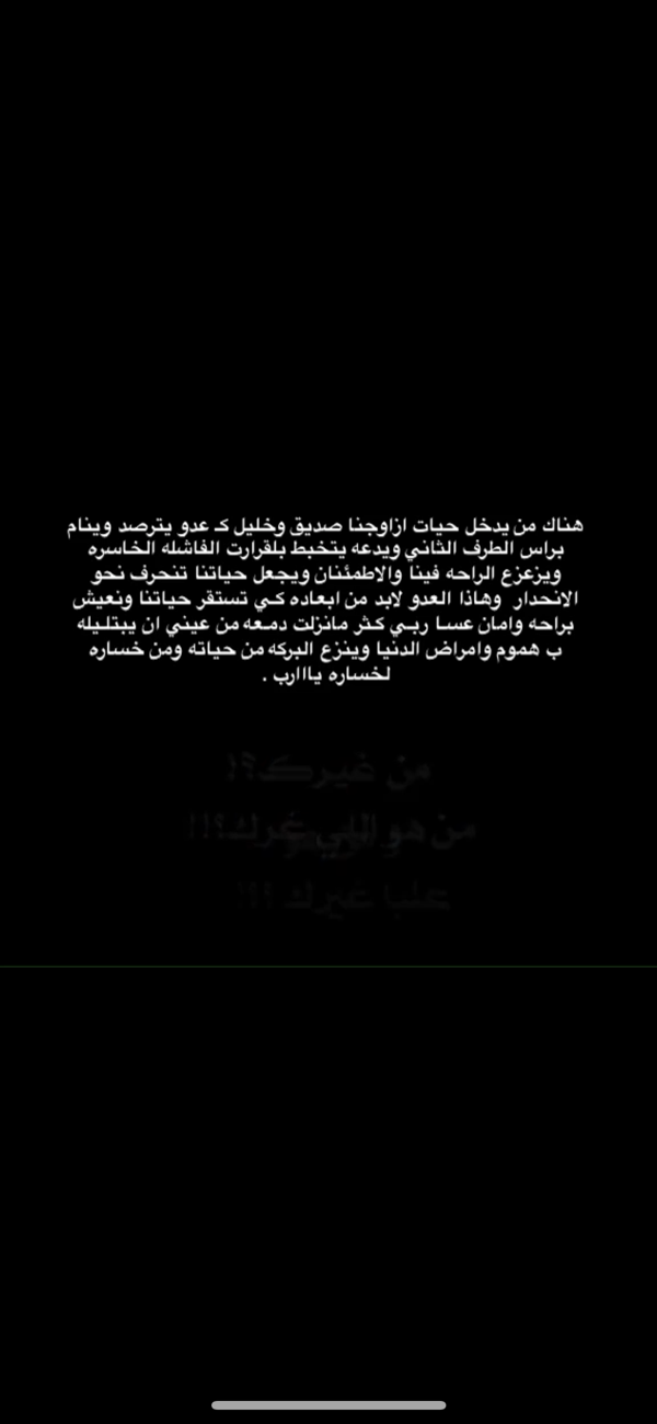 كتبت لها ان لمن كان بجمبي وعندي شفته يراسل زوجها وقريت انه يقول له طلقها وهو سمع كلام زوجها وحسبي الله ونعم الوكيل هاذي نهايتها يشتت عيله واني م اخليه من دعاءي