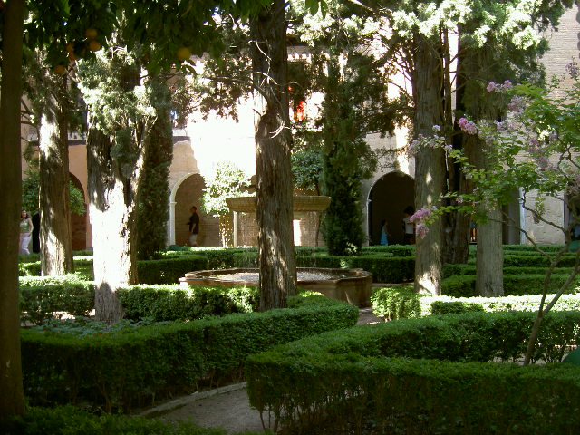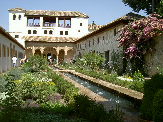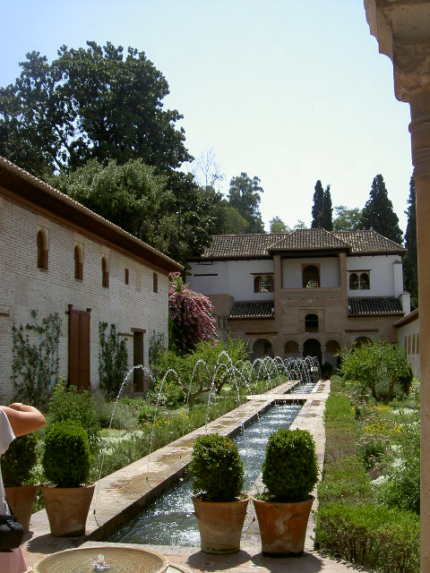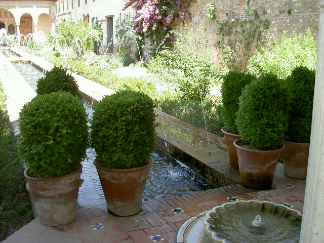 تتقدمه ساحة البركة Patio de Alberca أو "فناء الريحان" الكبير المستطيل الشكل،