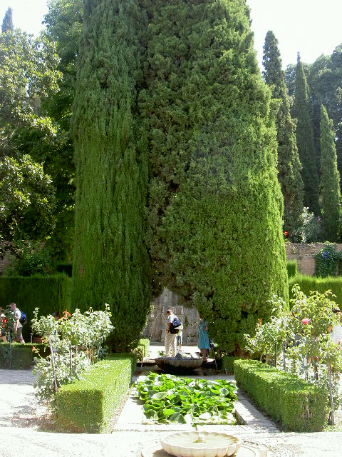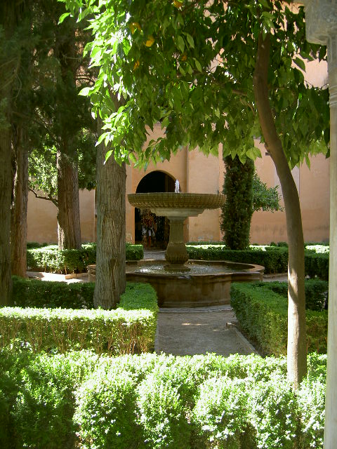تتوسطه بركة المياه وتظللها أشجار الريحان؛