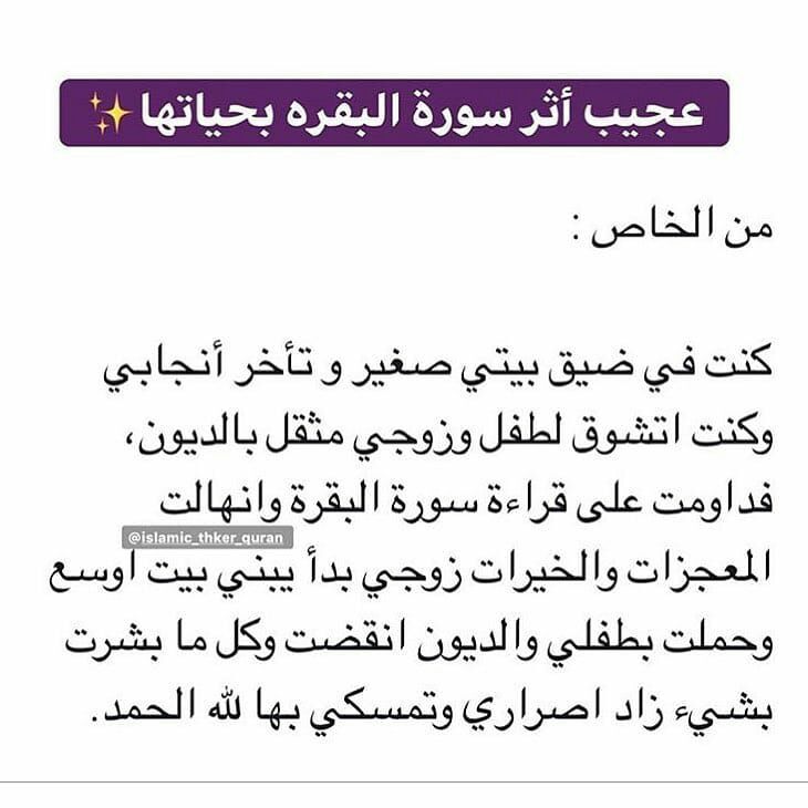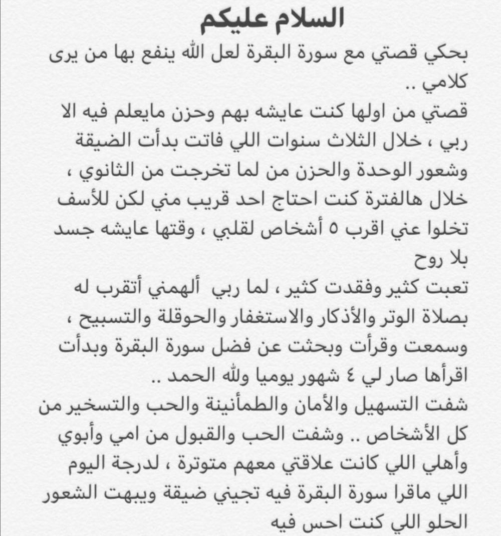 ومنذ أكثر من أربعة أعوام نصحني أحدهم بقراءة سورة البقرة يومياً