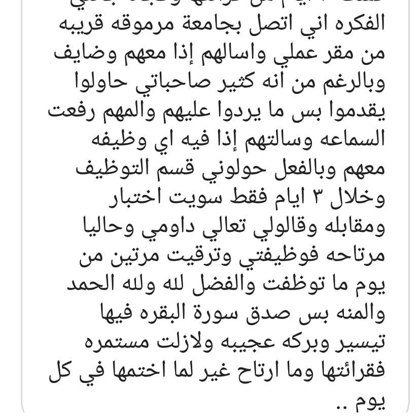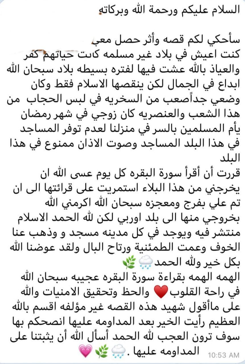 وحين يئست من كل شي لزمت قراءة سورة البقرة كل ليلة وكانت