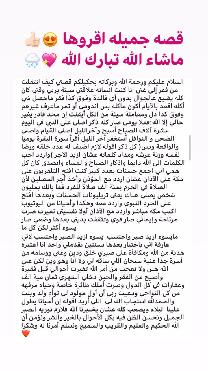 زوجي رجع حنون زي قبل، انا ارتحت في نومي وبشرتي وفي نفسيتي كللل شي تغير للافضل، ولله الحمد والمنه