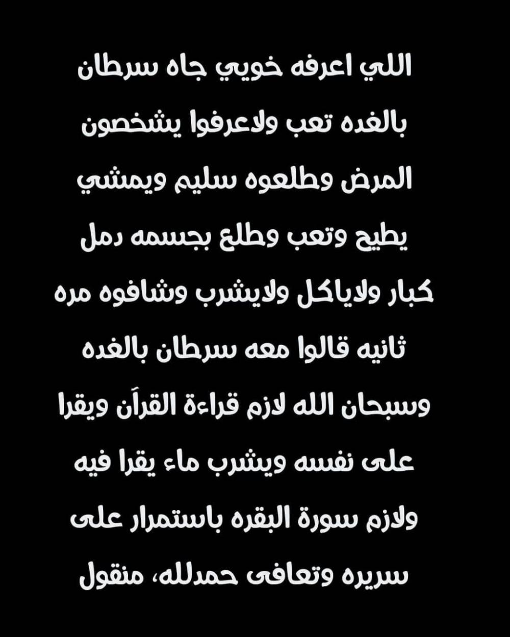 نصيحه لكل احد يعاني من اي مشكله مهما كانت، سورة البقرة الحل. ترى الشيطان يجيب لك نعاس قوي وقت القراءة، وأحياناً يجيك نشاااط على شغل البيت، والتنظيف، ويحسسك ان وقتك ضايع بالقراءة خليك ذكيه، و واصلي قراءتك، والله تشوفين العجب في نواحي حياتك كلها