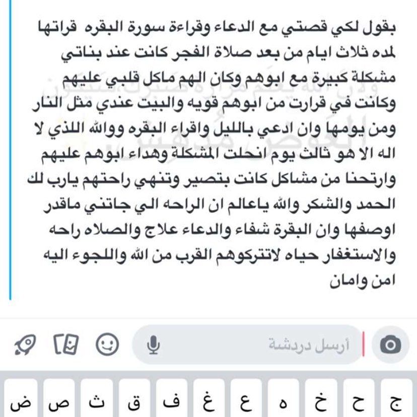 وبـــــــــــــــأخر الليل اصلي وأدعي الله وأستفغر وأذكر الله وأقرا سورة البقرة يوميااا واقرا سور منوعة بالقران