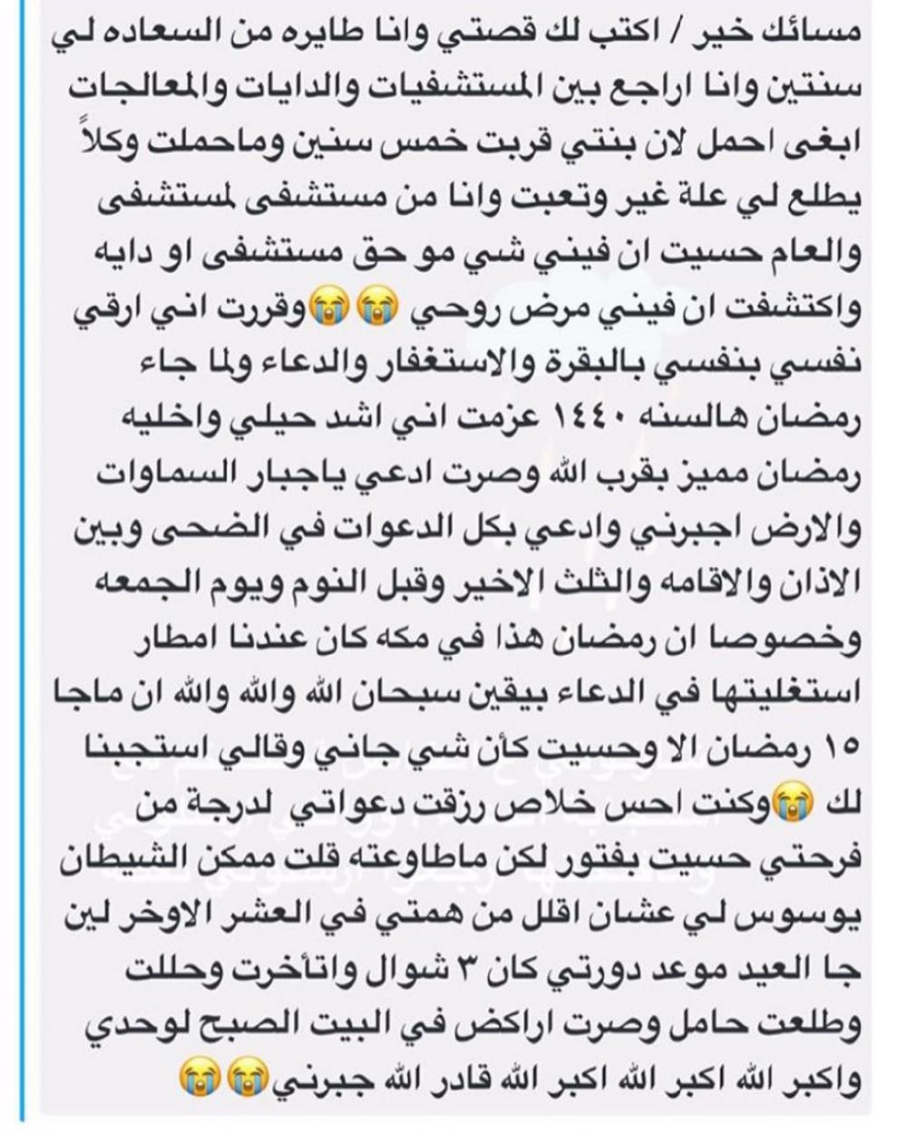 ويوم الجمعة اللي راح دعيت الله وقبل أنام صليت ركعتين تقربيا 8 الصباح دعيت ربي يرزقني الزوج الصالح ونمت وبنفس اليوم أمي تخبرني أن فية شخص تقدم لي
