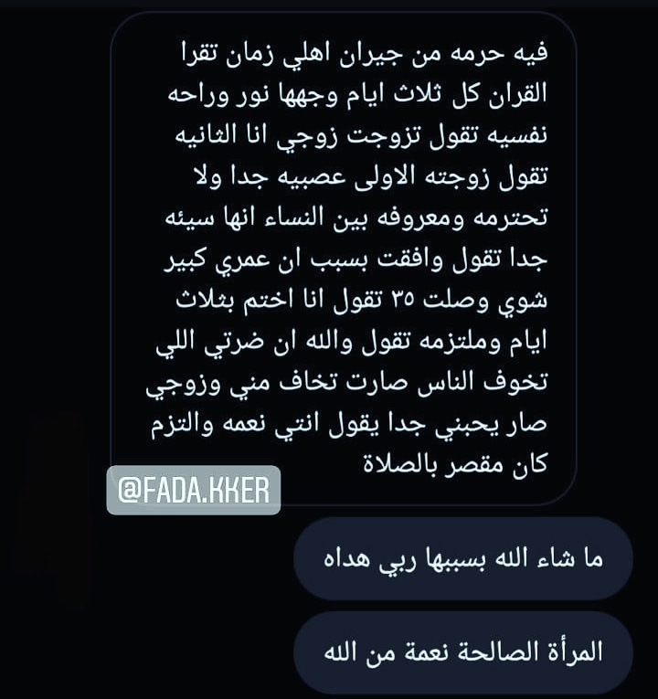والله فديتج ان احساسي يصدق كم مره يجوون ناس وما احس اني مرتاحه واستخير واخلي الامر يمشي ويسألون عنه وبعدها يطلع الرجال مو زيين.. يا معقد او راعي سوالف للأسف..وسبحان الله اصلاً قبل لا يجووون الخطاب مو بس احس اني مو مرتاحه..بعد ربي يخليني اشووف في احلامي واعرف اذا الخاطب اللي بيجي مو زين وتخيلي ان اغلب الاوقات يجي الخاطب مب زيين وامه قويه واخته بعد او خواته اذا عنده خوات تكون شخصيتهم قويه ..يوصلني الكلام..وهاذي رحمه وفضل كبير من ربي ان ما يصير نصيب..ما اقولج ان ما جاوا لي رجال صالحين والله اني يوم كنت اصغر اغلب اللي يجوني صالحين بس ابوي يردهم كله عشان الاصل والفصل..ظلمني في اشيا كثيره مو بس الزواج💔 طلبتج يا زهره انج تدعين لي ان الله يحقق اللي في خاطري لان خاطري مكسوور بشكل كبير...هالشي لو يتحقق بكوون من اسعد السعداء في الدنيا..الله الله بدعواتج الطيبه..وجزاك الله الفردوس الاعلى ووفقج في الدنيا والاخره❤️والله فديتج ان احساسي يصدق كم مره يجوون ناس وما احس اني مرتاحه واستخير واخلي الامر يمشي...