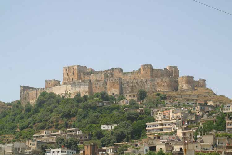 هي قلعة تقع غرب حمص بـ 60 كم شيدها المرداسيون عام 1031 وبعد قدوم الصليبيون عام 1099 أستولى على الحصن ريموند صنجيل ونهب محيطها من قرى ومزارع ثم أسترجعها منه أمير حمص سنة 1102 وقام بعدها تانكرد صاحب أنطاكية عام 1110 بالإستيلاء عليها وفي 1144 قام ريموند الثاني أمير طرابلس بتسليمها إلى فرسان القديس يوحنا المعروفين بالإسبتارية أو فرسان المشفى ، و منذ ذلك الحين بدأ المكان يعرف باسم حصن الفرسان ، و قد أعاد الإسبتارية بناء الدفاعات الجديدة للقلعة ، و قامو بترميمها بعد الزلزال الذي أصابها عام 1157 .
