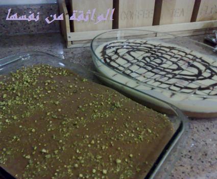 الكيكة بالصوص وحلى النسكافية مع الكريمة والشكولاة