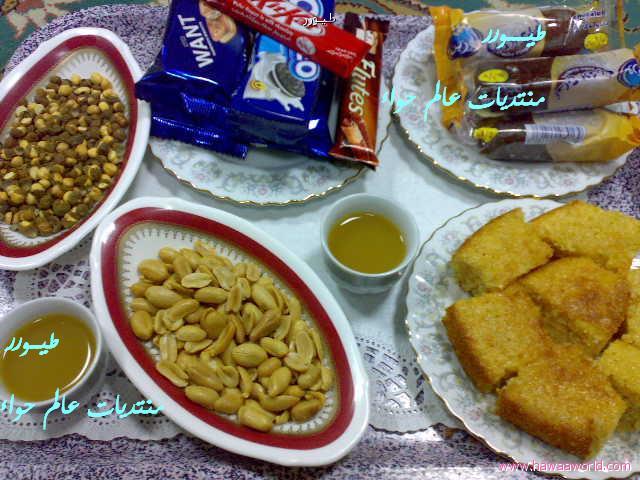 مع كيكة السميد وحلى بسكويت الاصفر وميني تشيز ل رروورري الله يعطيهااا العاااافيه