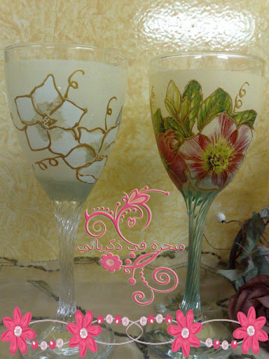 المهم مالكم بالطويلة رسمت على كاسات التقديم وكمان عملت على كاسات ثانية بالديكوباج