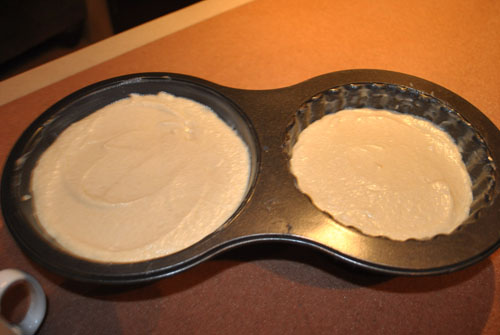 ما نملي الصينية لفوق لا نخلي جزء عشان ارتفاع الكيكة بعد الخبز
