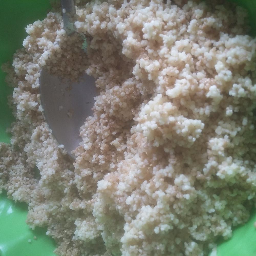 المقادير... 2 كوب كسكسي... لو عندك كسكاس تبليهم بماء و زيت و شوي ملح و تحركيهم و تخليهم يستوو تخليهم يستوو البخار... لو ما عندك كسكاس .. تاخدي الكسكسي و تحطيه باناء عميق و تحطي عليه كوبين ماء يغلي و رشة ملح و 3 ملاعق زيت و تغطيه و تخليه على جنب ....