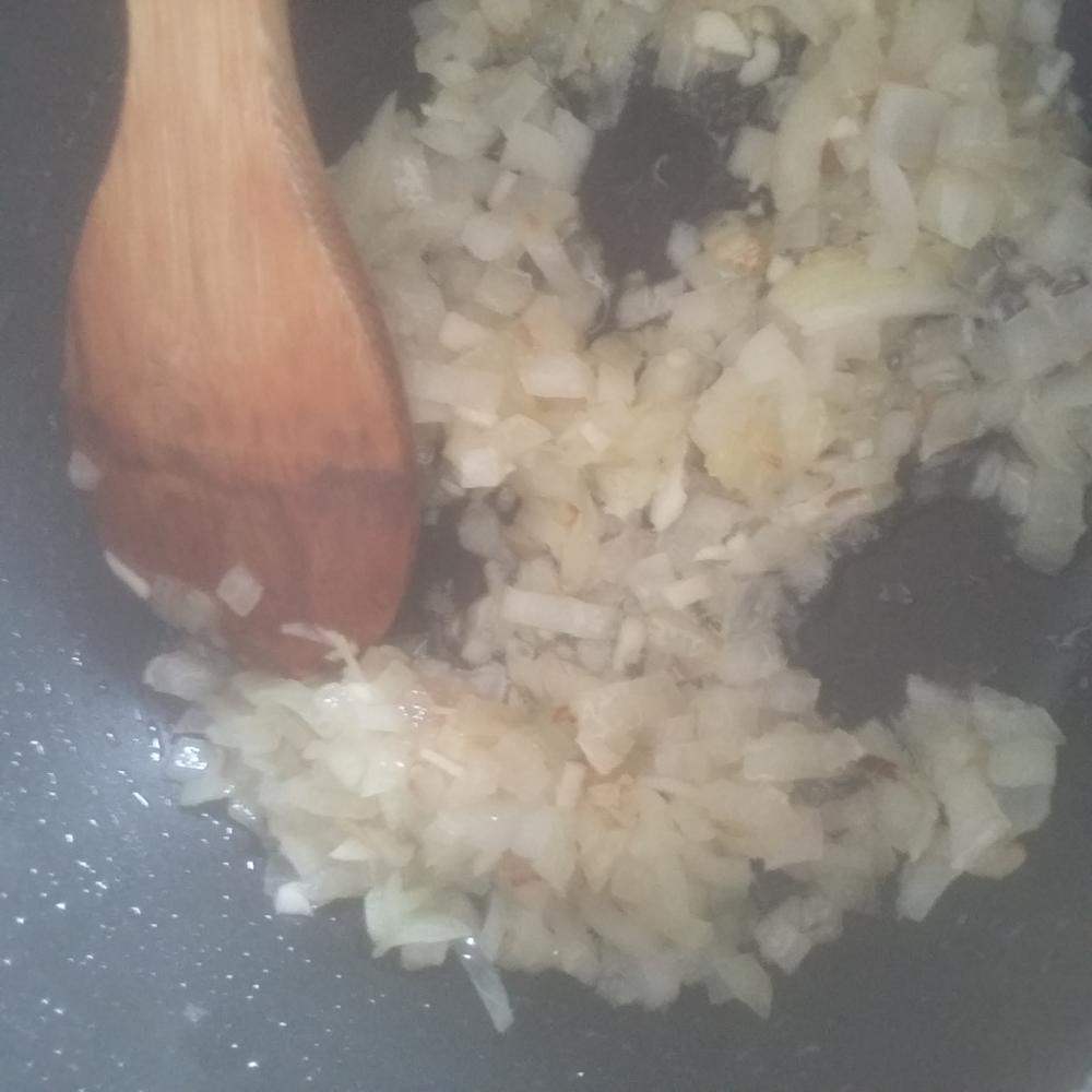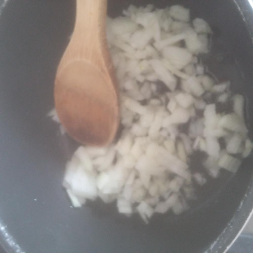 بصلة مقطعة صغير ...توضع مع ربع كوب زيت على النار لعند ما تذبل