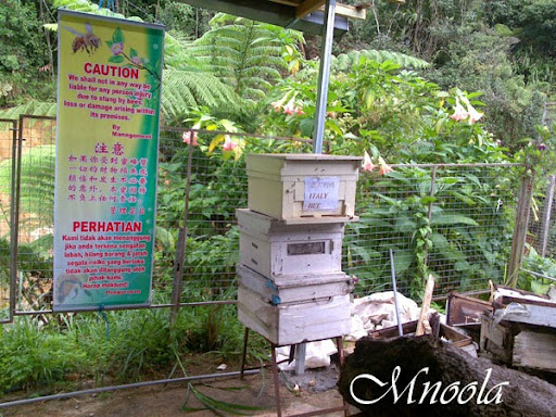 هذه احد بيوت النحل >> وشايفين النحل شكله كبير وطبعا دا بيكون غريب علينا لأننا ماقد شفنا هيك ببلادنا >> عائلتها لديهم خلايا نحل ^_^