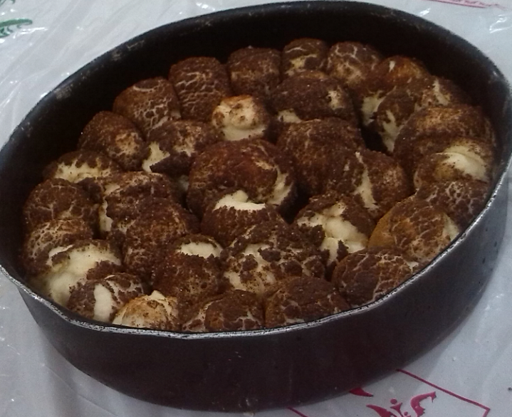 خذي من العجينة قطعة واحشيها بجبن كيري غمسي اول في الزبدة بعده القرفة