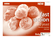 عند قسم الكيك والدقيق تلقي علب كرتون مربعه مكتوب عليها fast action yeast