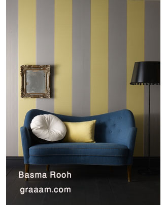 حطي جدار واحد ورق جدران مقلم او مشجر ليموني بلمسات كحلي او رمادي او فضي