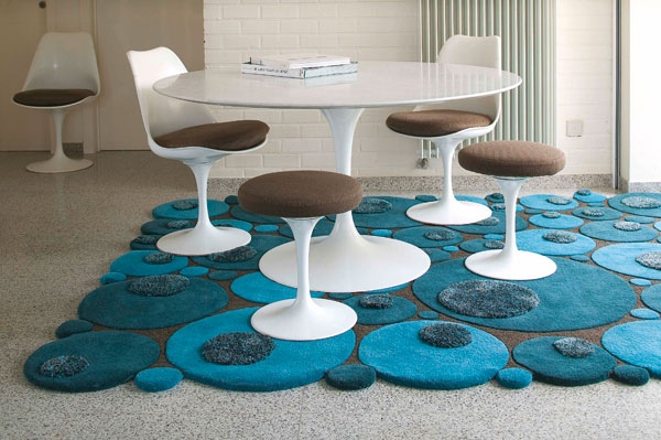والخداديات فضي او احمر او فوشي والسجاد اذا كان الكنب ساده خليه مشجر بدرجات الازرق