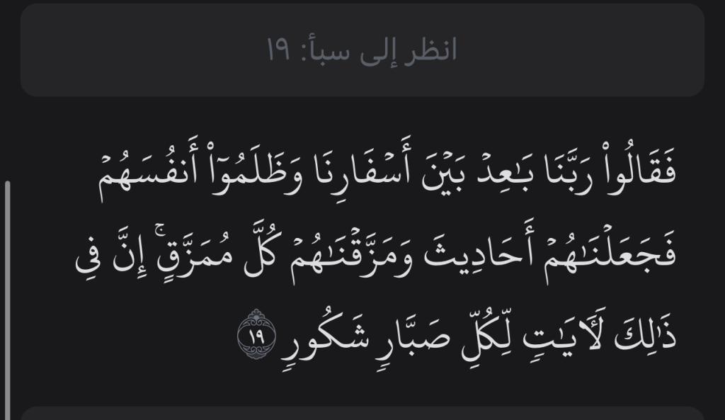 أحسن الله إليك أنا على الصعيد الشخصي كذلك في صراع مع نفسي أخاف أكون مليت من النعم والفراغ اللي عندي ويحصل لي مثلما حصل لقوم سبأ لما ملّوا النعم