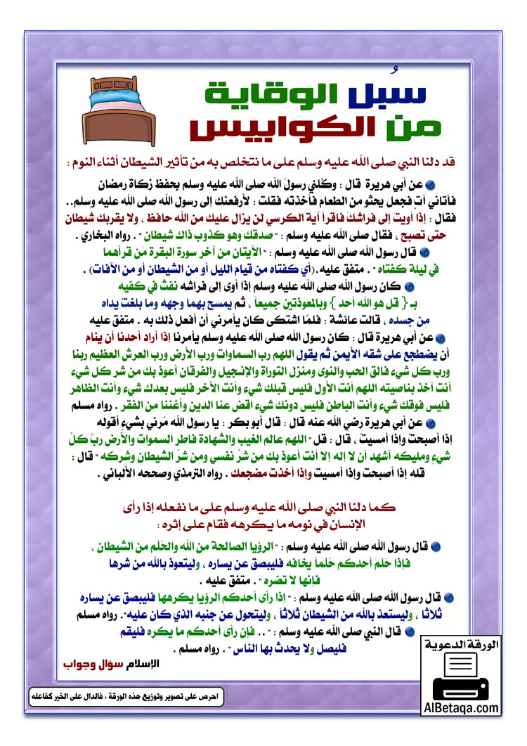 ثم تمسحين رأسك ووجهك وماأستطعتي من جسمك وبإذن الله ماراح تجيك هالكوابيس..